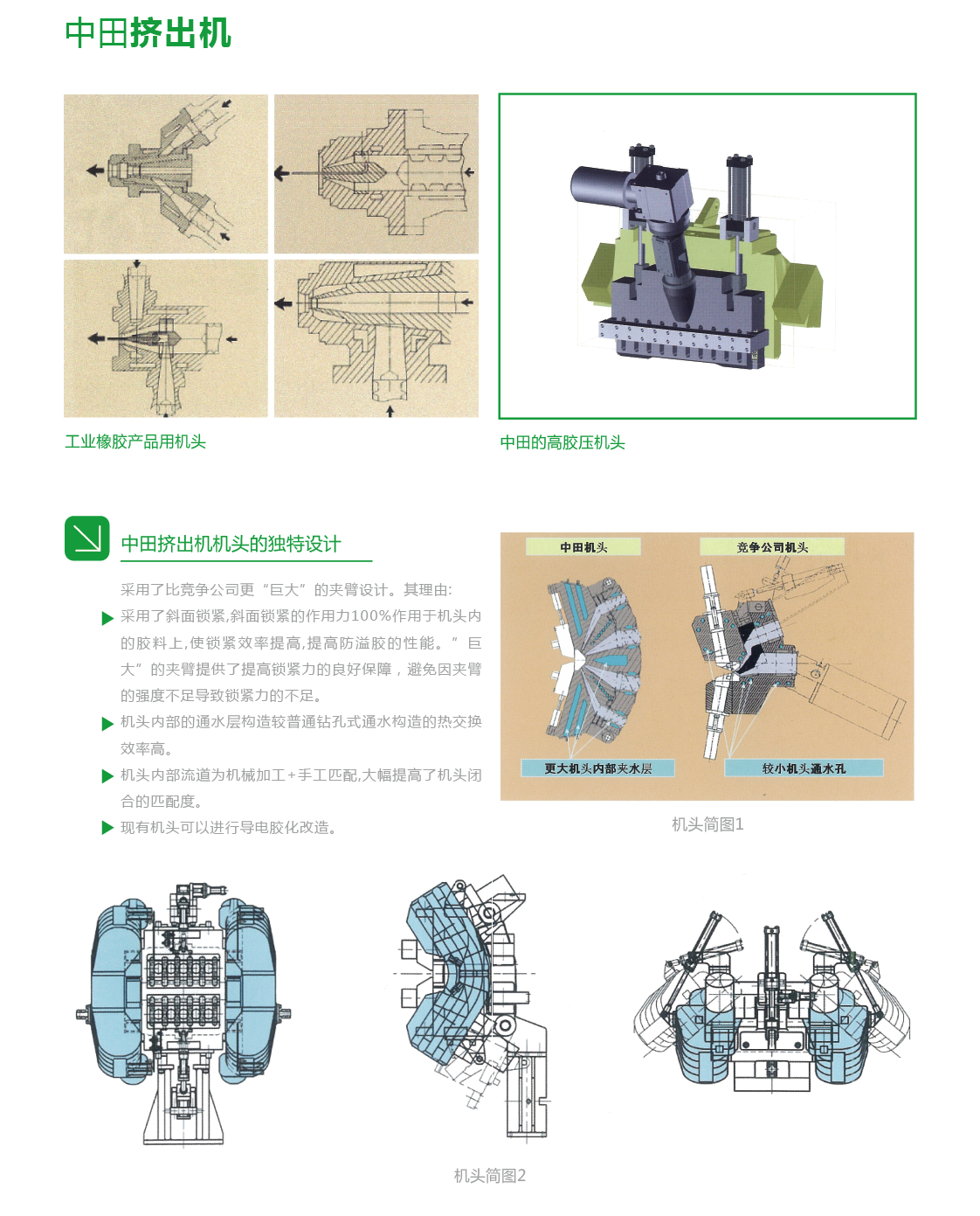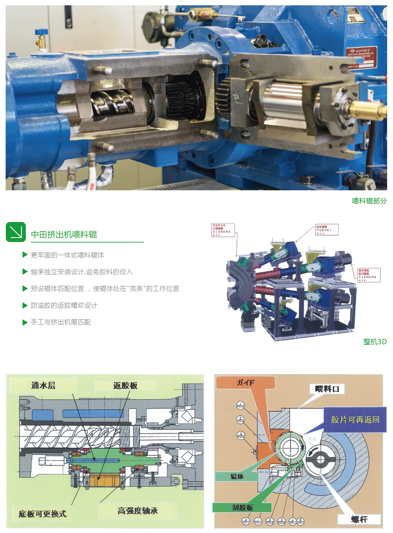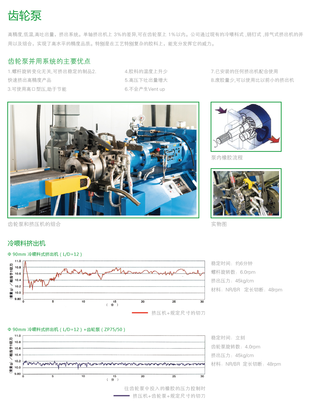 機(jī)頭的獨(dú)特設(shè)計、一體式喂料輥、齒輪泵